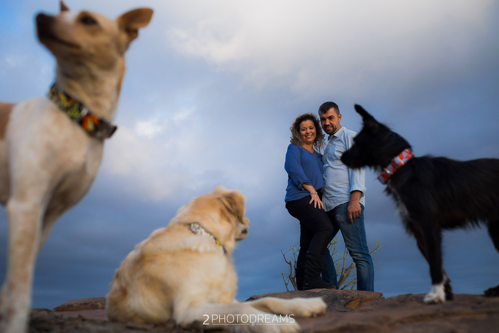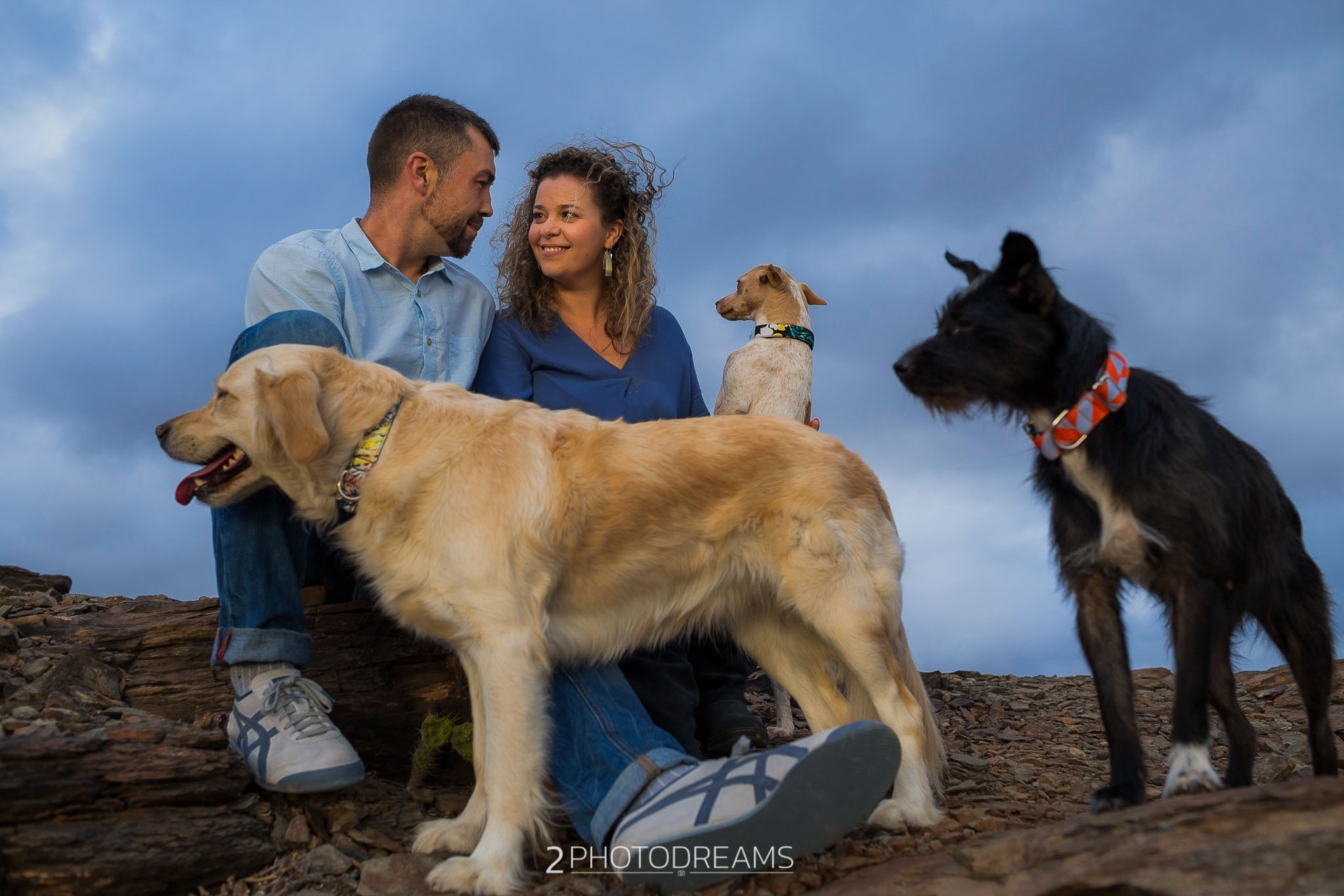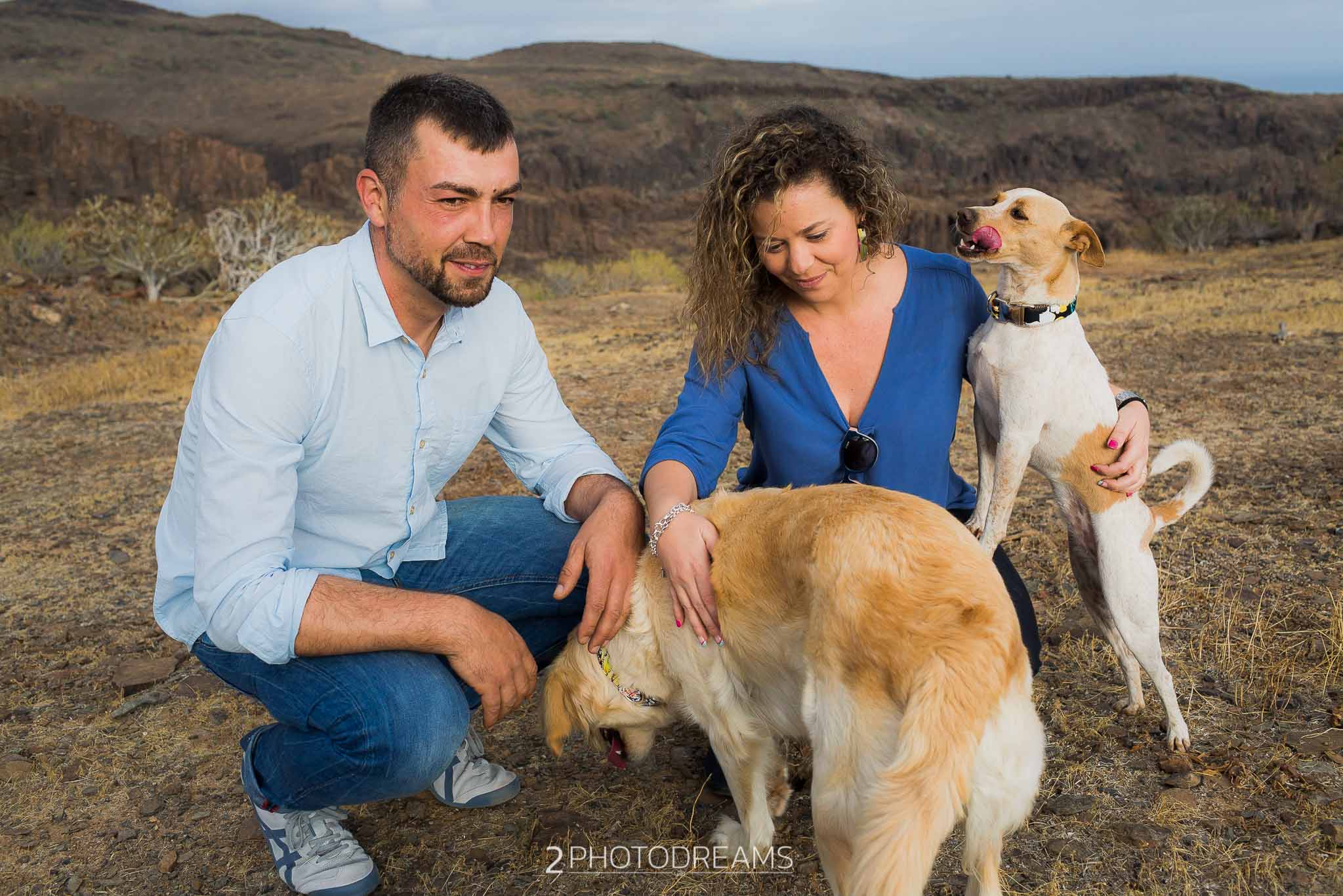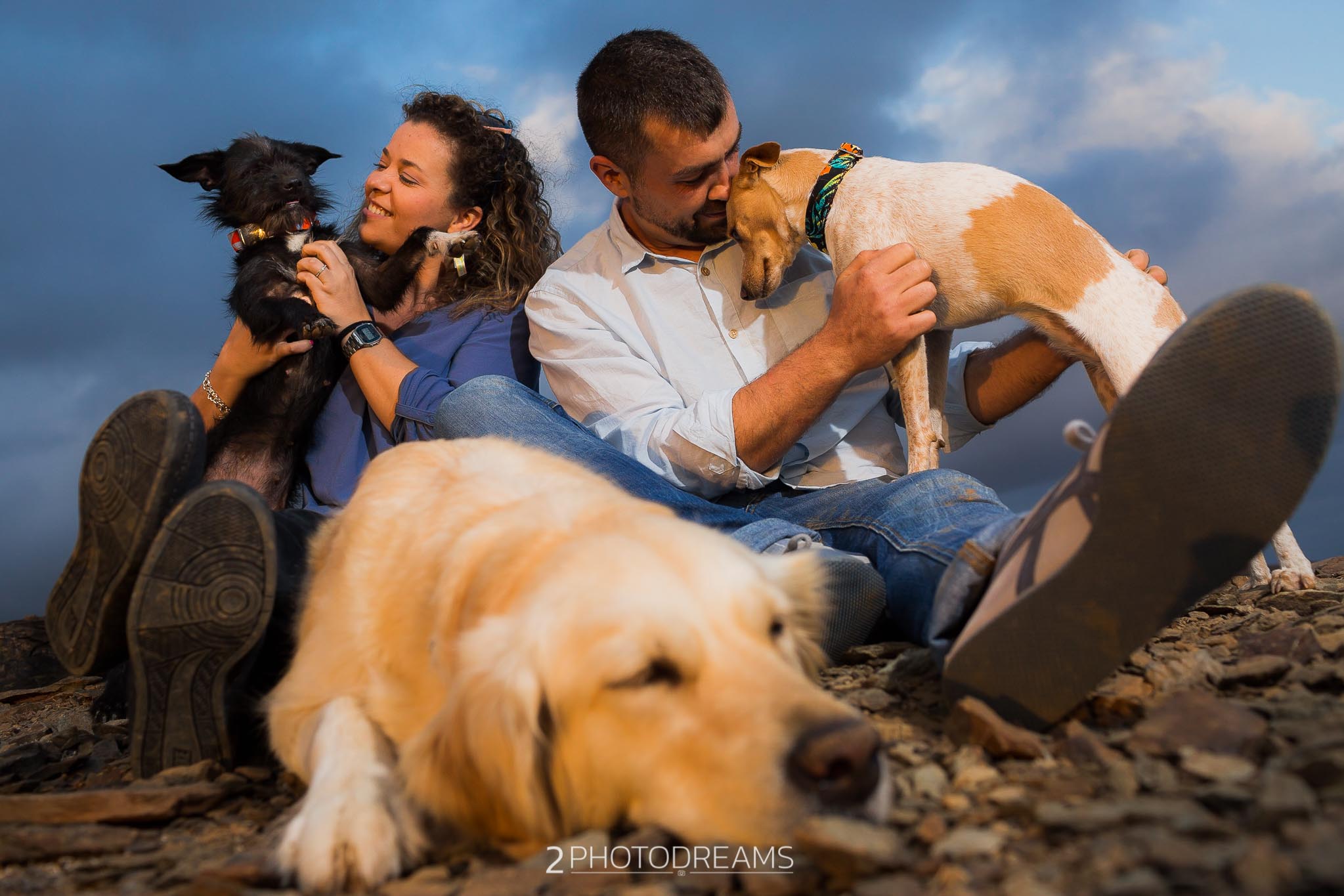 Lovers of animals, those beings who only want to receive affection, give clean and pure love without asking for anything in return. This couple adopted these three wonderful dogs. Look at their expressions, their expressions of affection, their demand for attention … there is nothing better than seeing their owners, taking care of them and pampering them, giving them their full attention so that they feel as much loved as possible. This couple wanted to have a great memory with their hairy friends, printing the images in large format to have them hung in their living room. Do you fancy a session like this one?