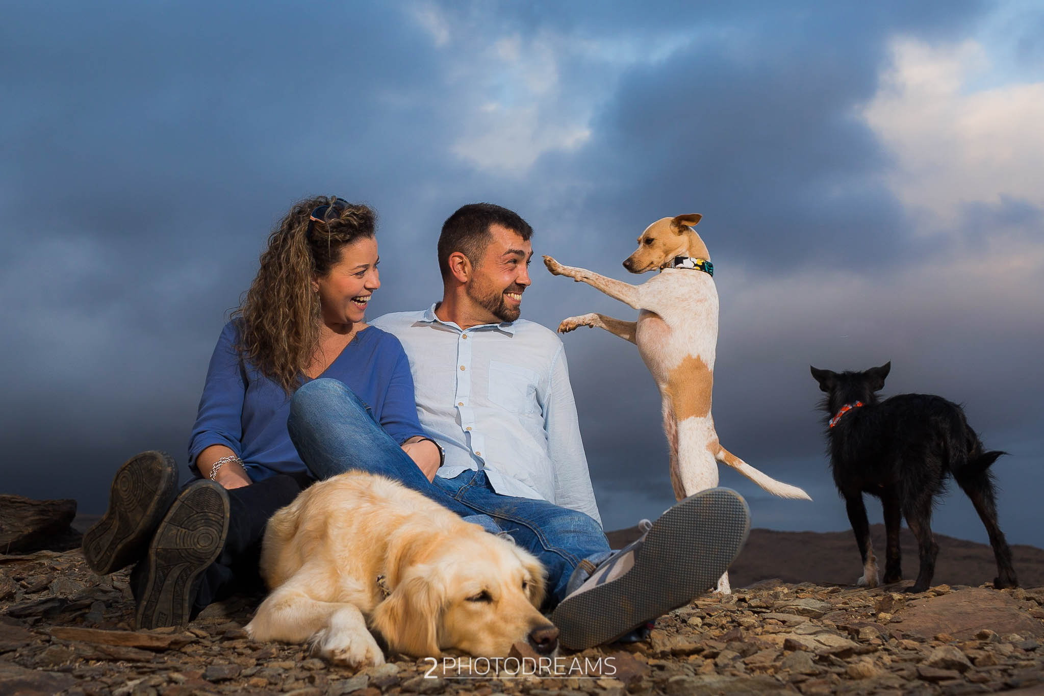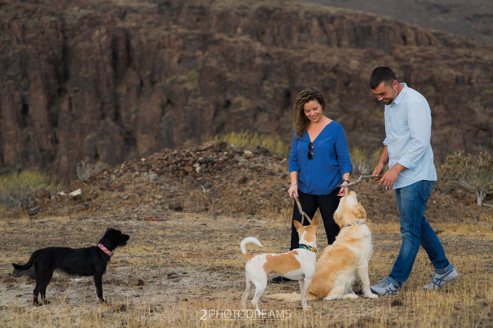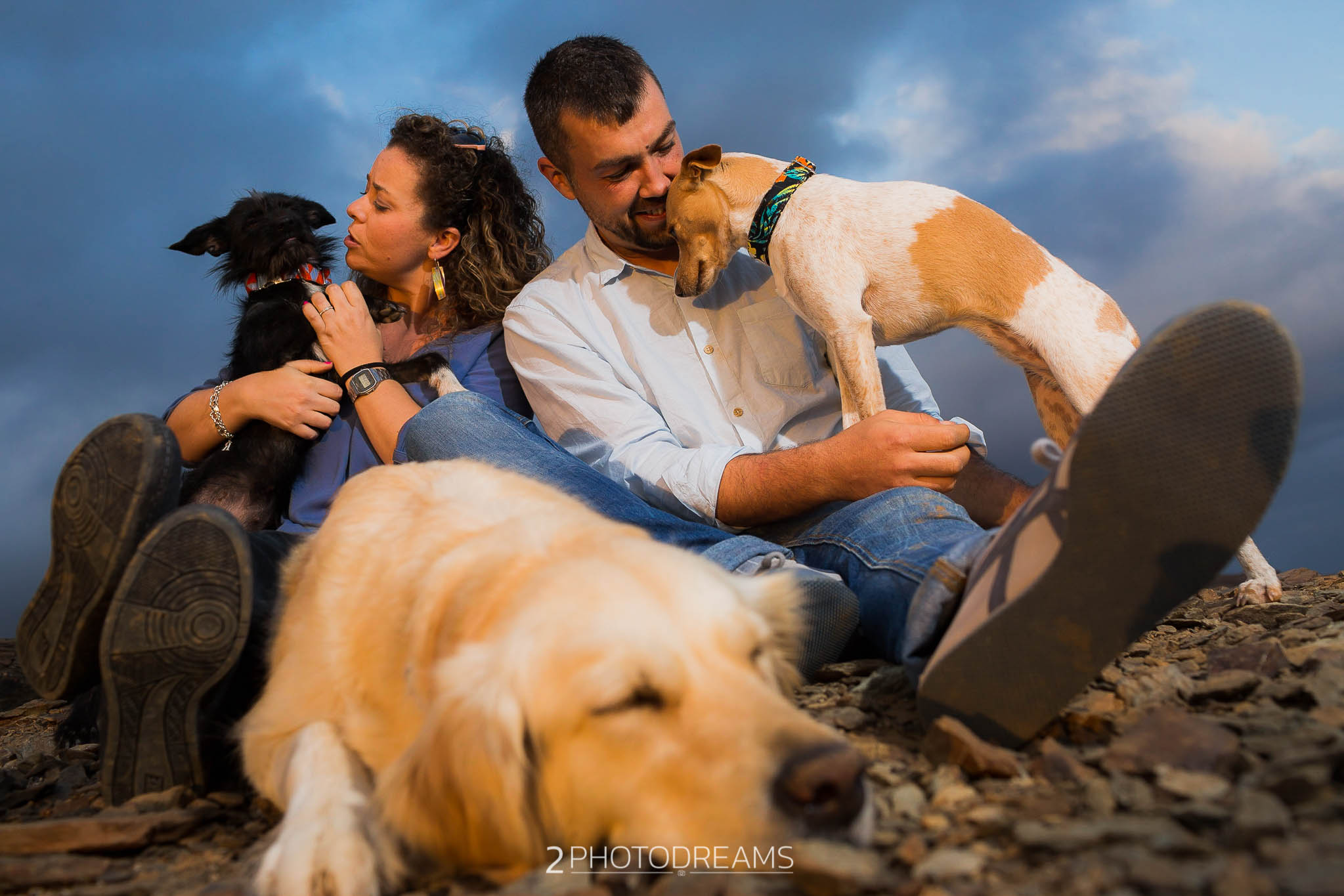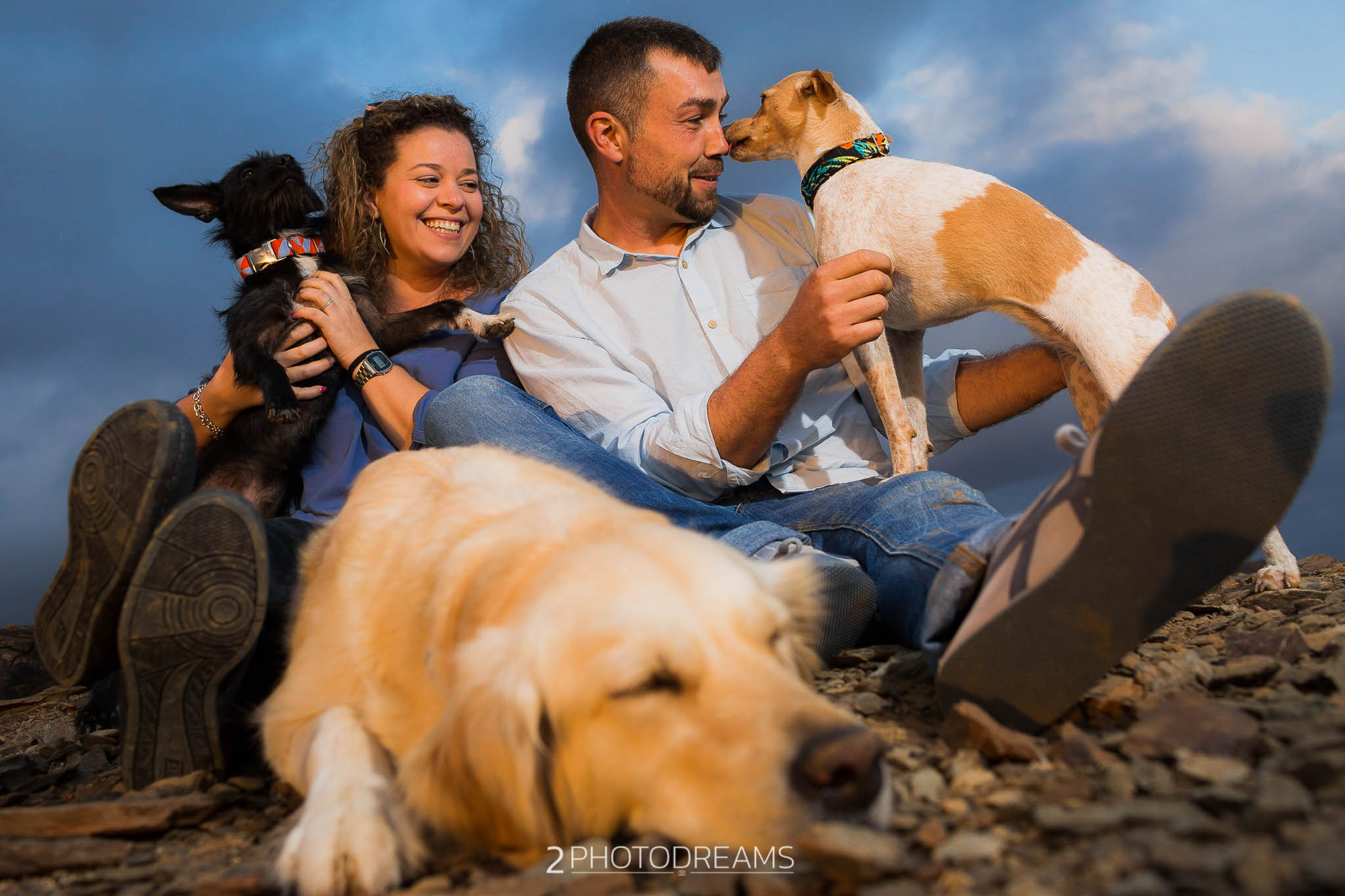 Lovers of animals, those beings who only want to receive affection, give clean and pure love without asking for anything in return. This couple adopted these three wonderful dogs. Look at their expressions, their expressions of affection, their demand for attention … there is nothing better than seeing their owners, taking care of them and pampering them, giving them their full attention so that they feel as much loved as possible. This couple wanted to have a great memory with their hairy friends, printing the images in large format to have them hung in their living room. Do you fancy a session like this one?