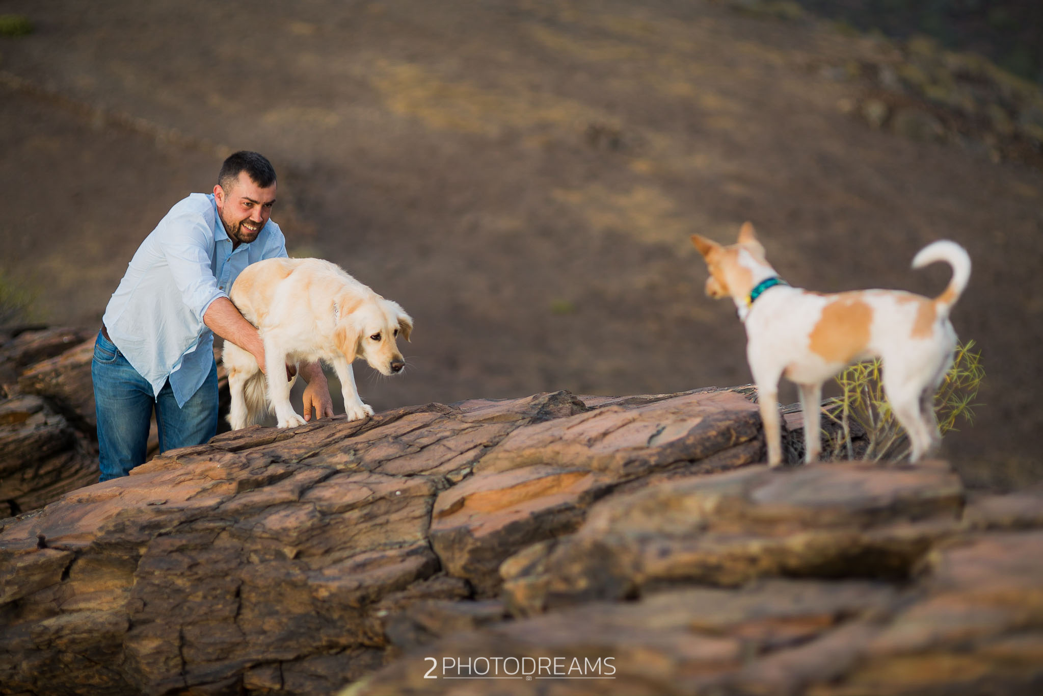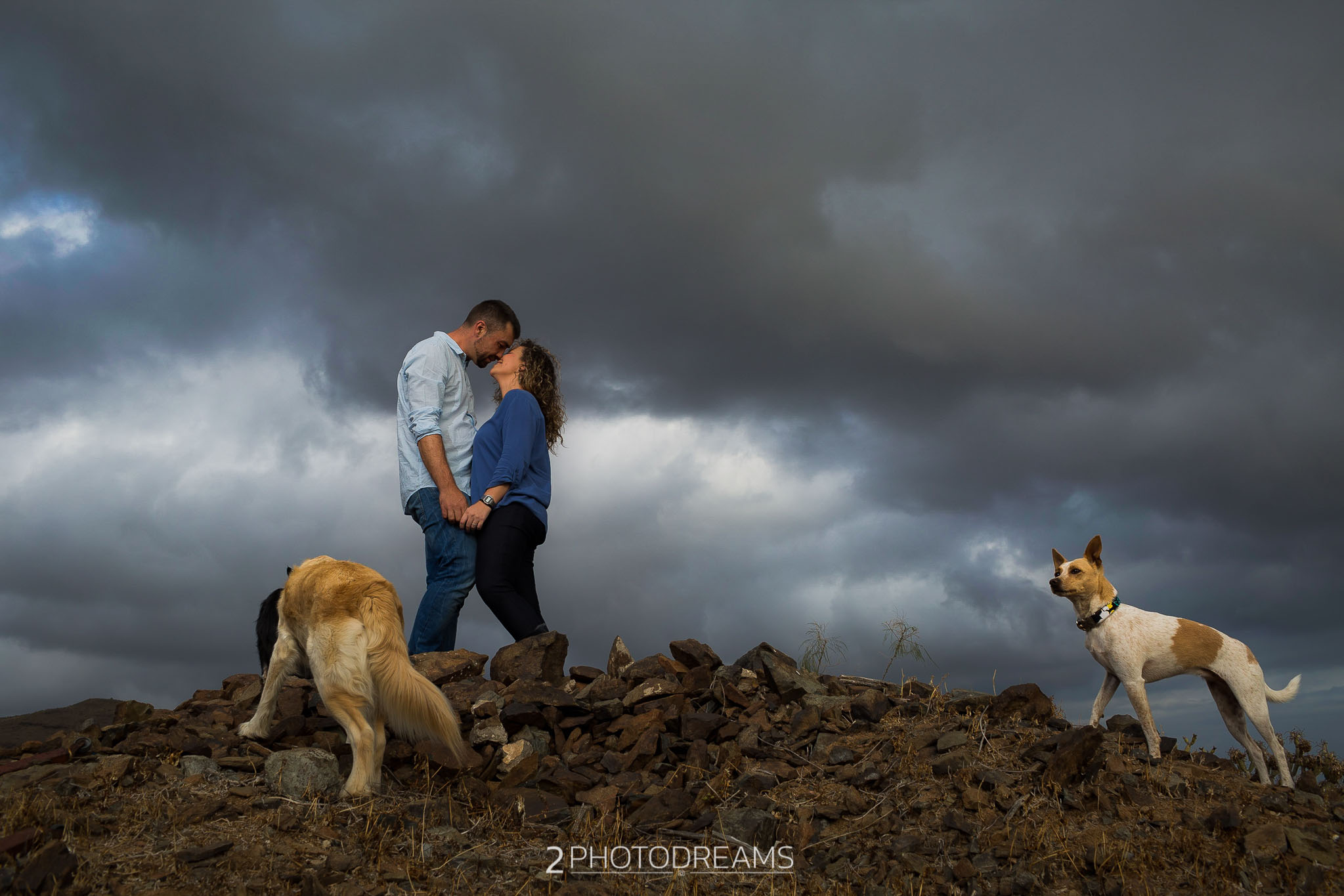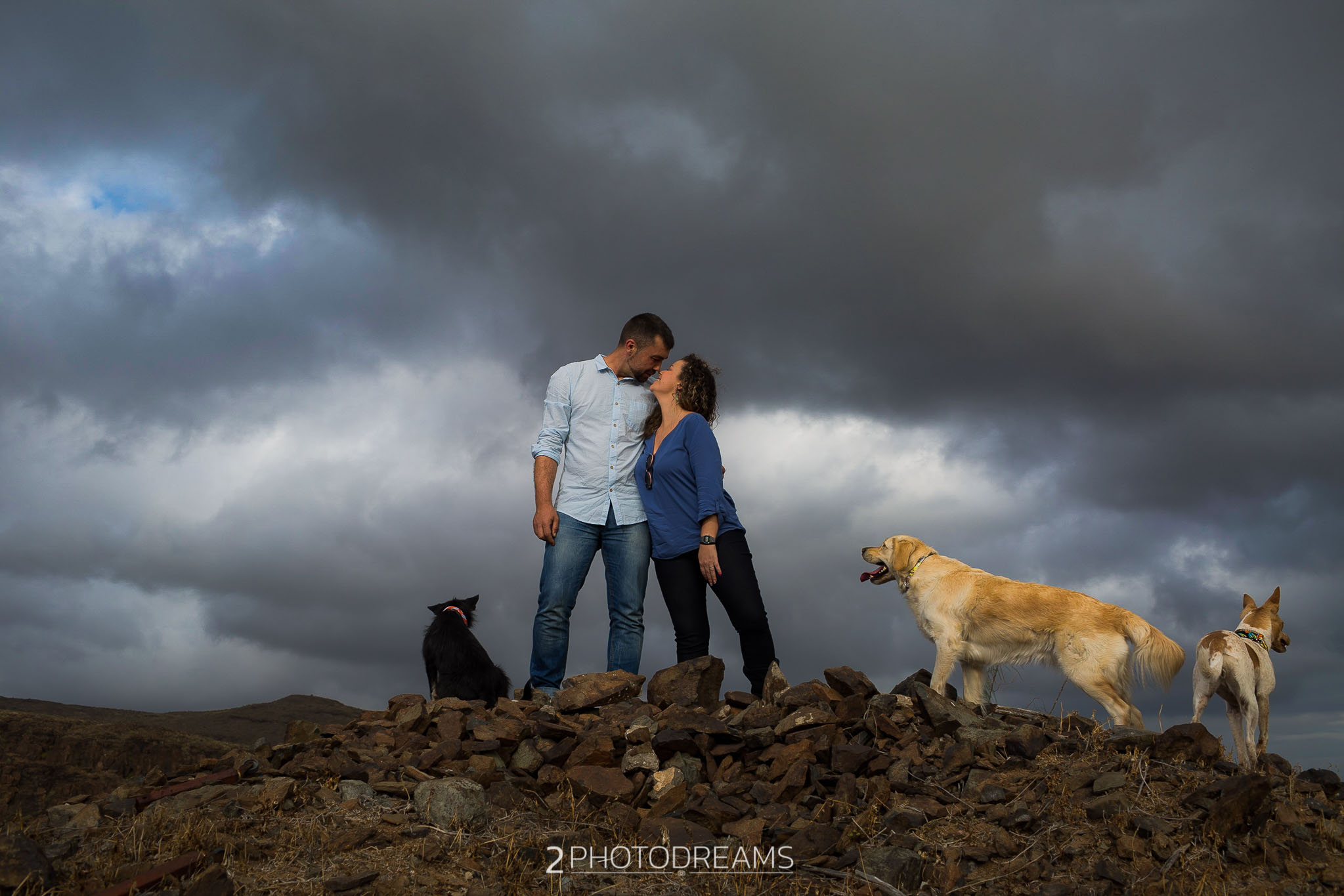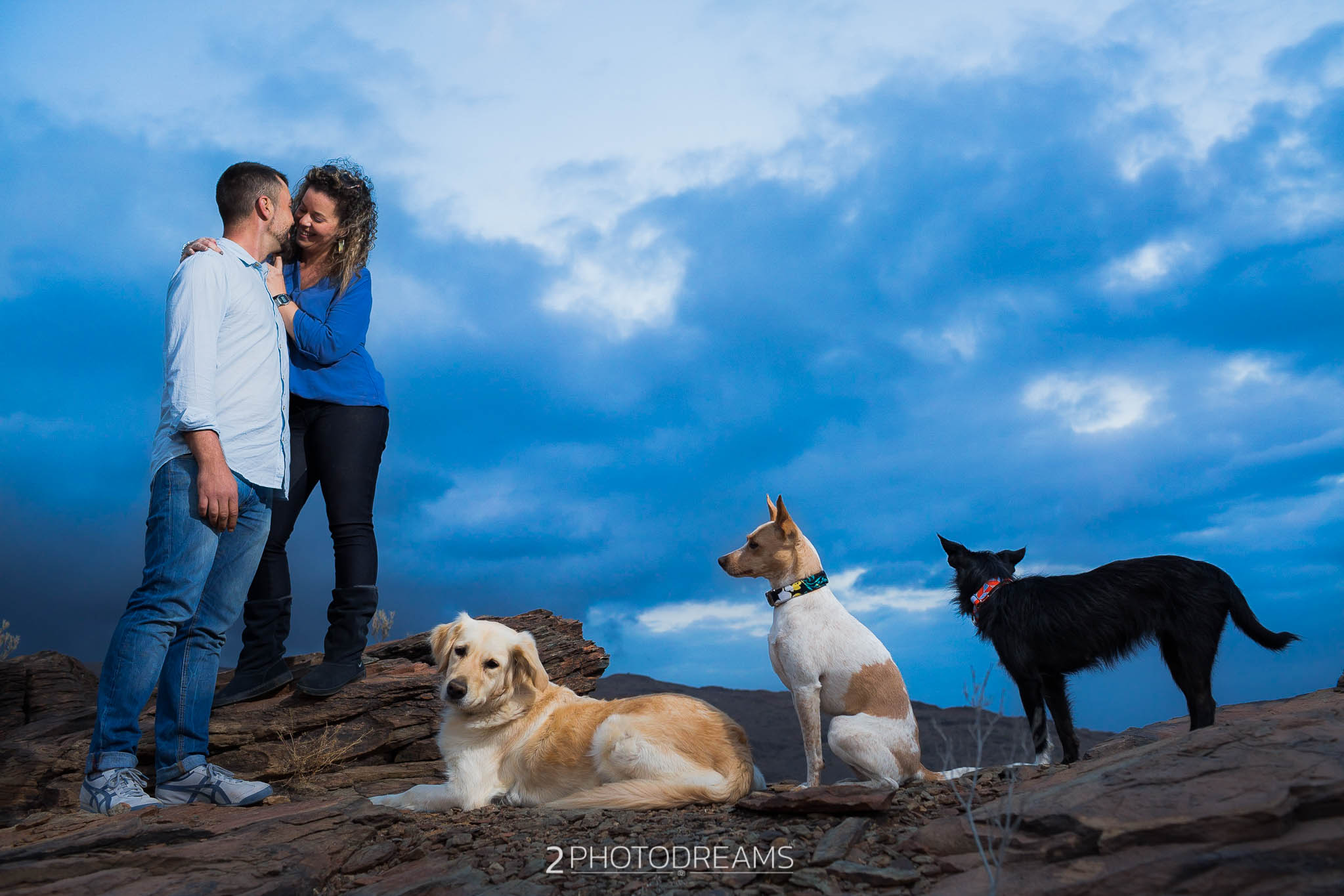 Lovers of animals, those beings who only want to receive affection, give clean and pure love without asking for anything in return. This couple adopted these three wonderful dogs. Look at their expressions, their expressions of affection, their demand for attention … there is nothing better than seeing their owners, taking care of them and pampering them, giving them their full attention so that they feel as much loved as possible. This couple wanted to have a great memory with their hairy friends, printing the images in large format to have them hung in their living room. Do you fancy a session like this one?
